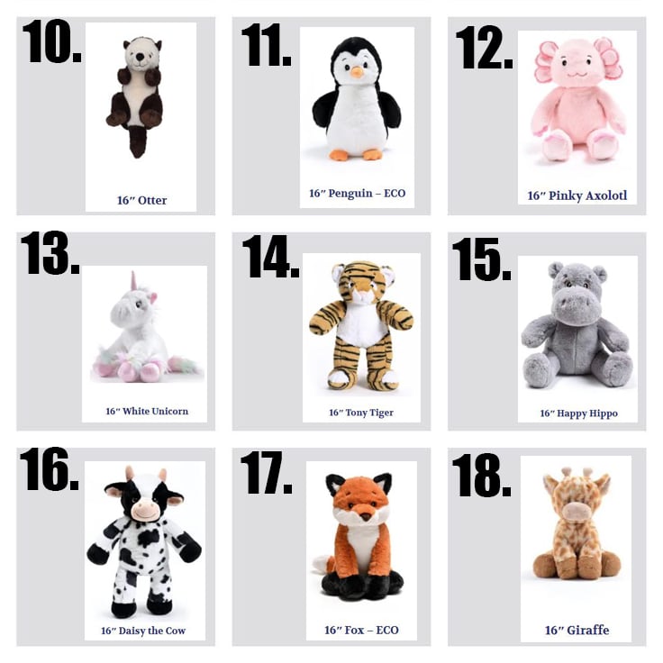1- pick your animal stuffy NUMBER that you want. Add it to your cart.